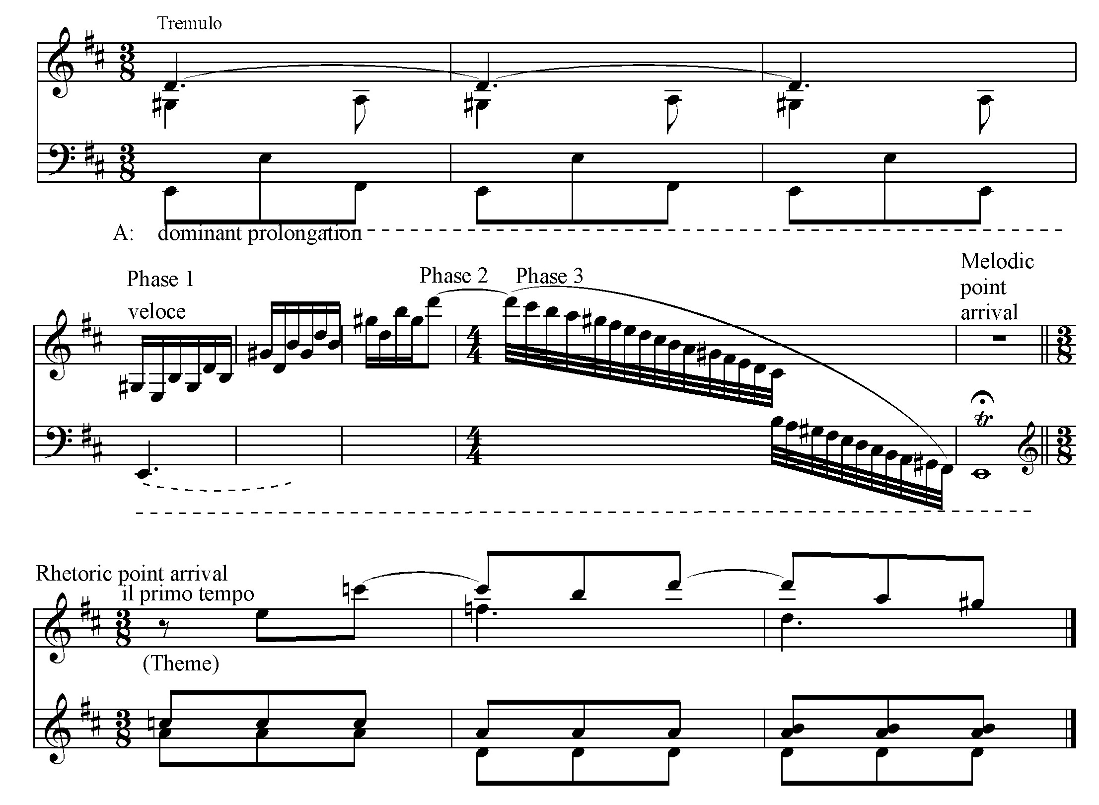 O artigo analisa um gesto retórico que aparece frequentemente no repertório tonal e pós-tonal, a partir de uma análise de Patrick McCreless realizada em 2006 sobre o mesmo assunto. Defende-se a ideia de que o gesto é mais limitado do que o autor propõe nessa referência, reduzindo-o a três fases relacionadas com o processo da expectativa. Para realizar a análise foram revisadas as definições de gesto em geral e de gesto retórico em particular, propostas por renomados pesquisadores. A análise é baseada em conceitos que envolvem: a participação do corpo na audição de música, a atribuição de significado, a audição metafórica, e, finalmente, o modelo de expectativas recentemente proposto por David Huron. Os casos de gesto que aparecem no repertório pianístico e sinfônico, desde o século XVIII até o principio do século XX são investigados.