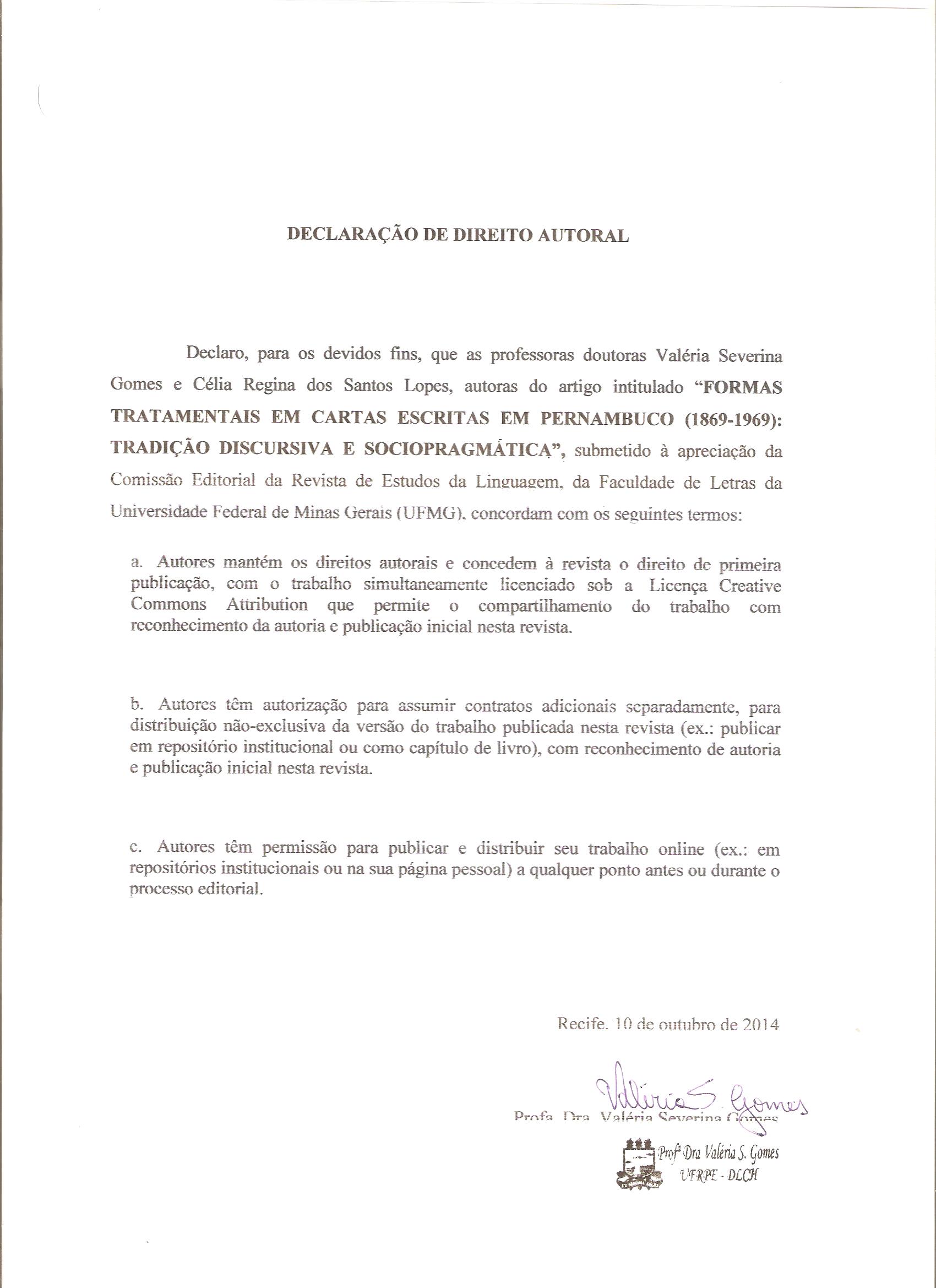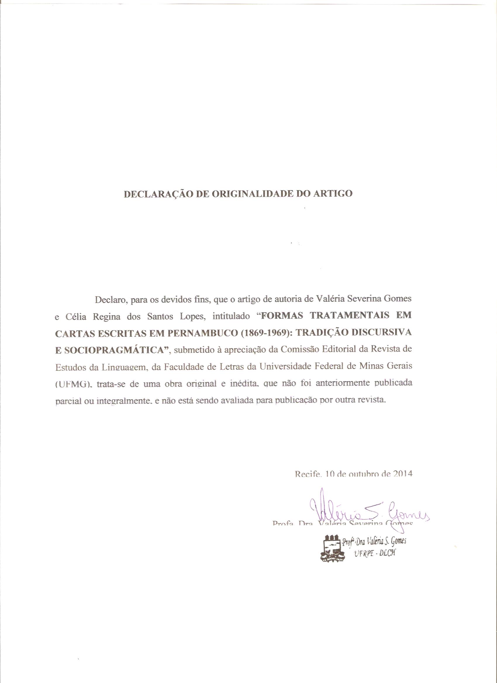 Formas tratamentais em cartas escritas em Pernambuco (1869-1969): tradição discursiva e sociopragmática