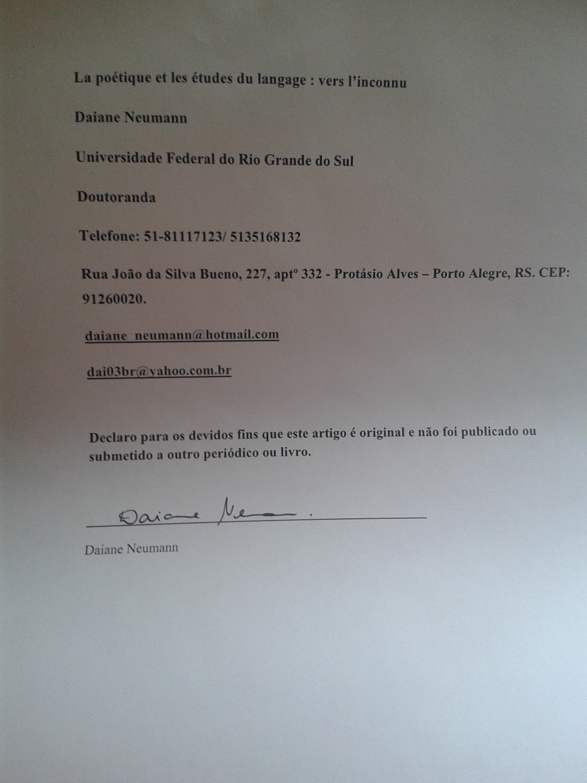 Mots-clés: Poétique; Études du langage; Linguistique de l’énonciation.