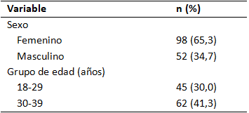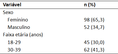 Tabela 1 – Distribuição dos participantes segundo sexo, faixa etária e escolaridade. Belo Horizonte, MG, Brasil, 2024 (n = 150)