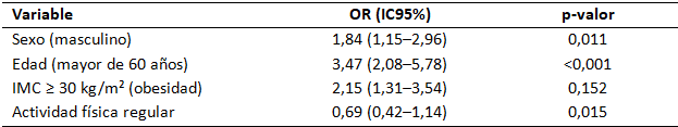 Tabela 2 – Associação entre variáveis independentes e presença de hipertensão arterial em adultos. Belo Horizonte, MG, Brasil, 2024 (n = 320)