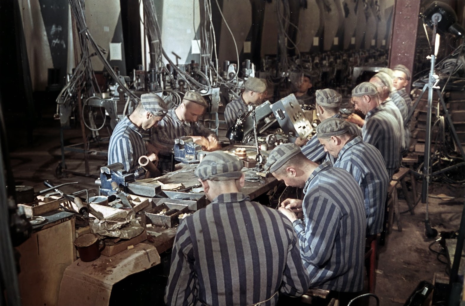 - Prisioneiros de Dora-Mittelbau na fábrica de foguetes V-2 no complexo Mittelwerk em 1944