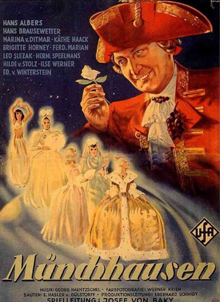 - Cartaz original do filme Münchhausen (As aventuras do Barão de Münchhausen, 1943).